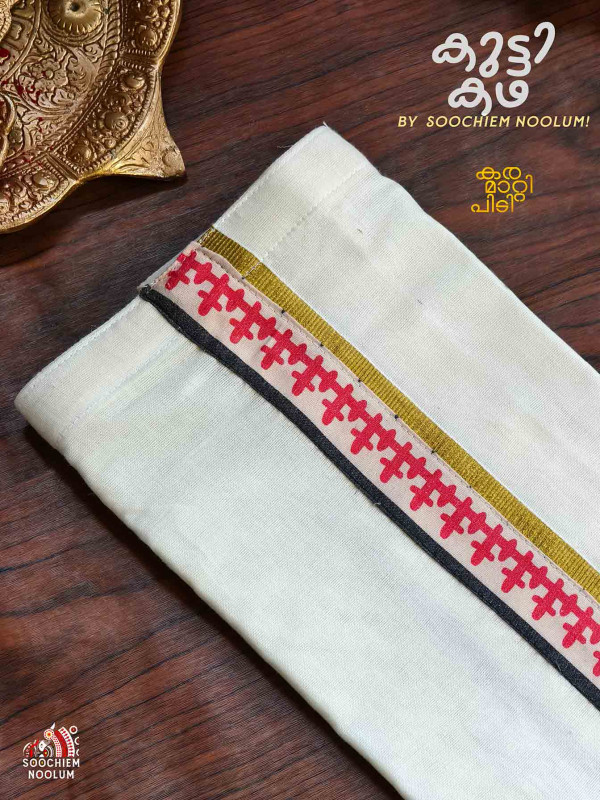 Introducing the vibrant Kids' Dhoti Collection by Kutti Kadha from Soochiem Noolum, specially crafted to blend tradition and comfort for energetic little ones. Each dhoti is meticulously designed from soft cotton fabric and beautifully adorned with colorful stitched borders and elegant embellishments, adding a playful charm to traditional attire.