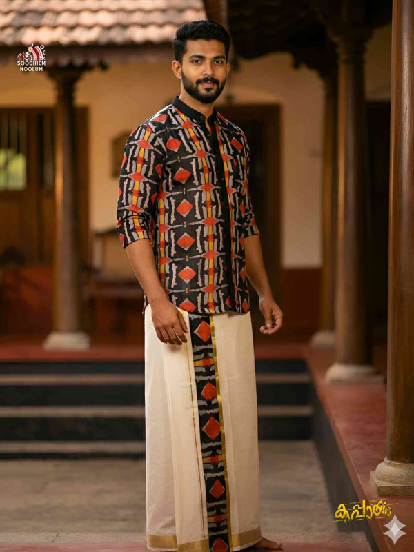 Product Specifications: Designer Shirt +Double Dhoti combo by Soochiem Noolum