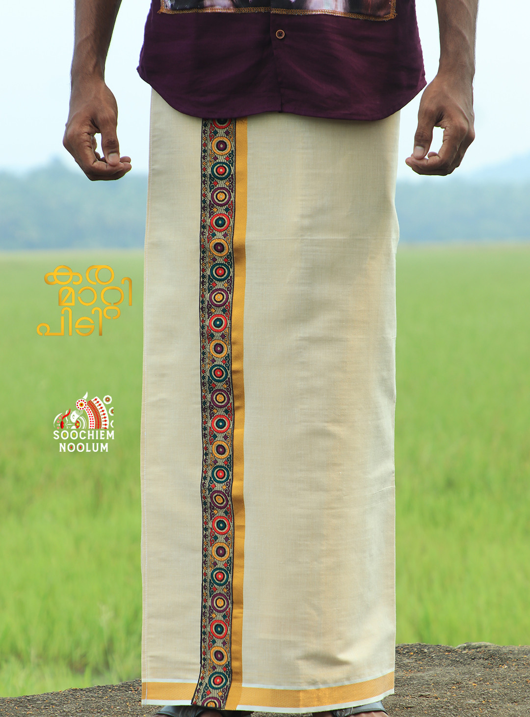 Product Specifications: Multi Colour Embroidery Golden Kasavu Single Dhoti