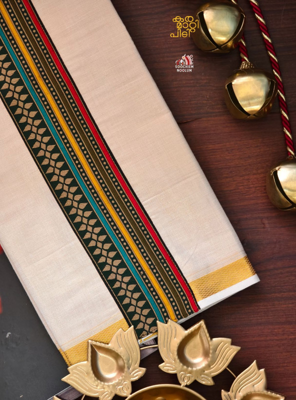 Product Specifications: Multi Colour Embroidery Golden Kasavu Single Dhoti