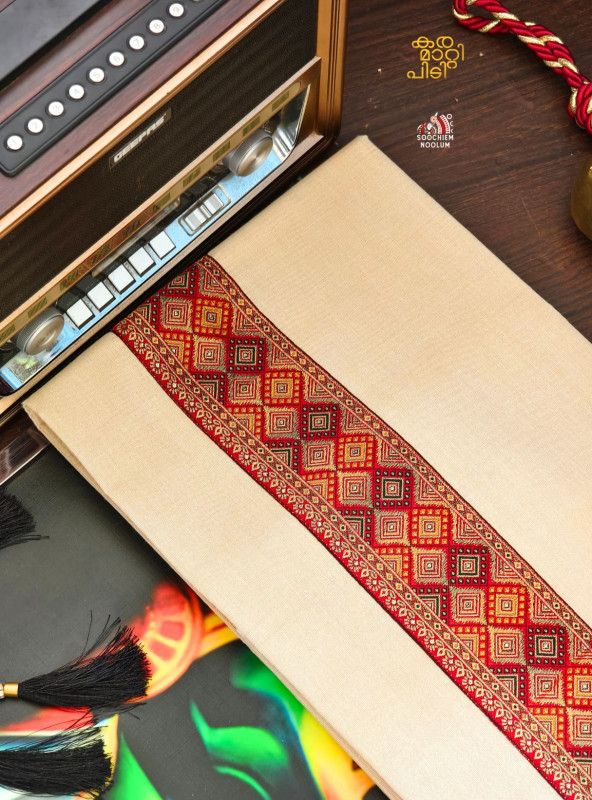 Product Specifications: Multi Colour Embroidery Silver Kasavu Single Dhoti