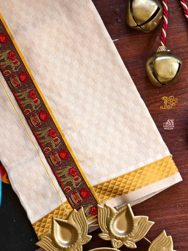 Product Specifications: Multi Colour Embroidery Silver Kasavu Single Dhoti