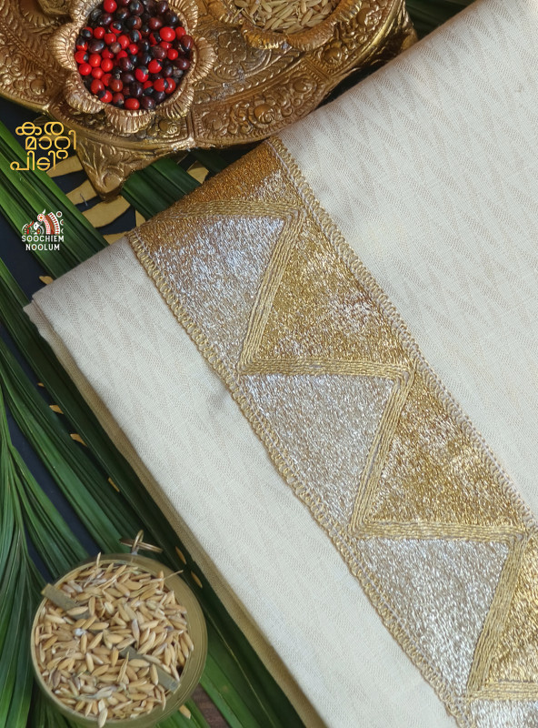 Product Specifications: Multi Colour Embroidery Silver Kasavu Single Dhoti