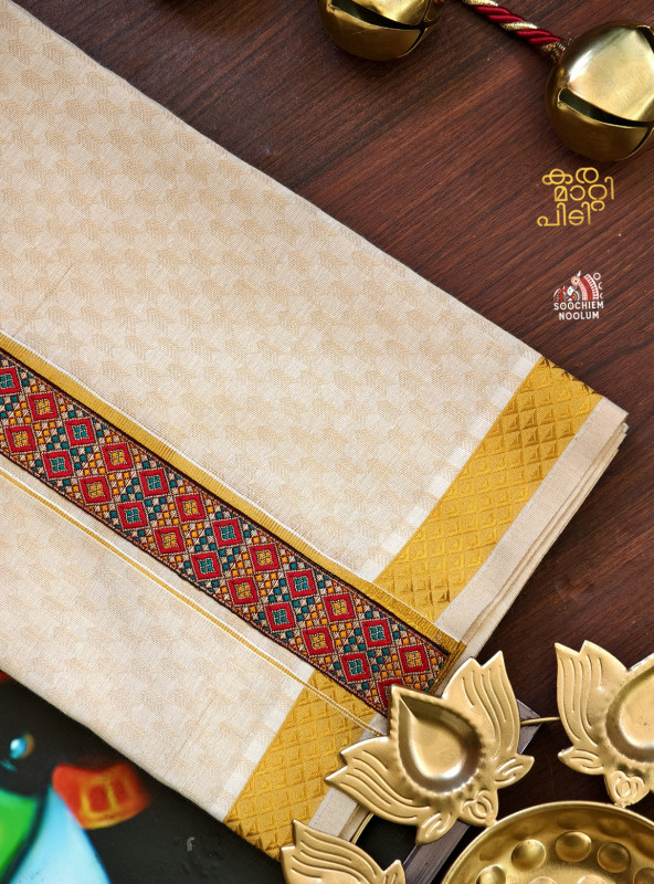 Product Specifications: Multi Colour Embroidery Golden Kasavu Single Dhoti