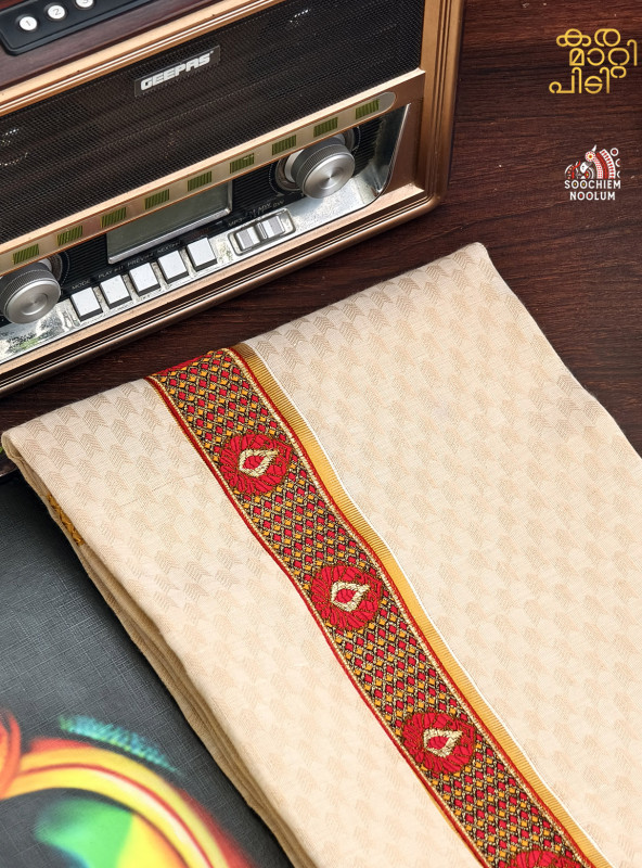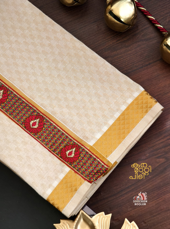 Product Specifications: Multi Colour Embroidery Golden Kasavu Single Dhoti