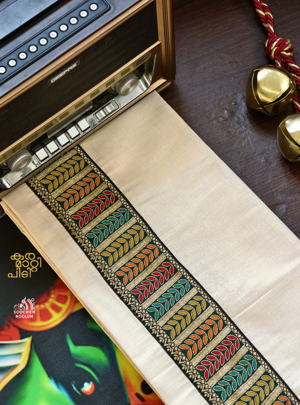 Product Specifications: Multi Colour Embroidery Golden Kasavu Single Dhoti
