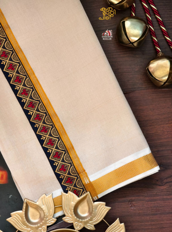 Product Specifications: Multi Colour Embroidery Golden Kasavu Single Dhoti
