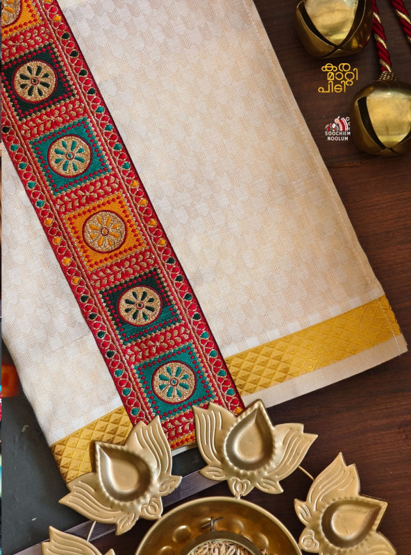 Product Specifications: Multi Colour Embroidery Golden Kasavu Single Dhoti