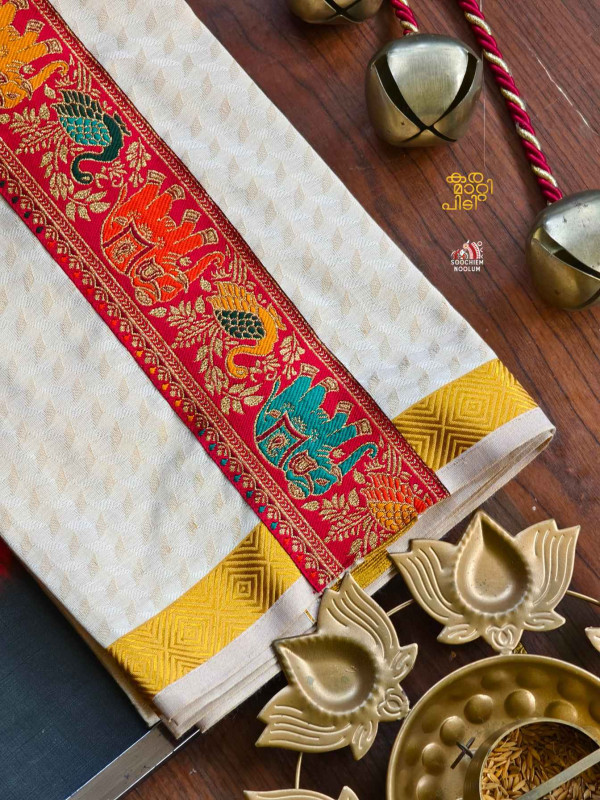 Product Specifications: Multi Colour Embroidery Golden Kasavu Single Dhoti