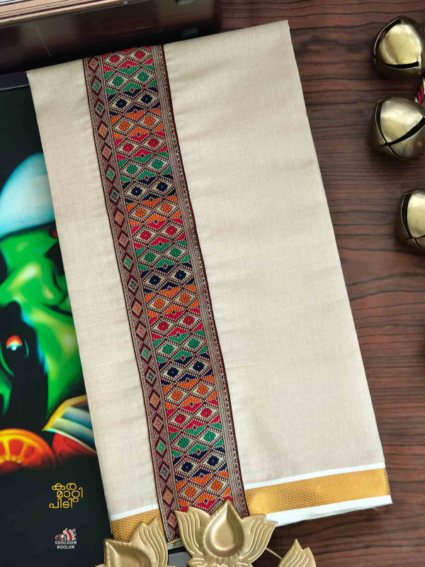 Product Specifications: Multi Colour Embroidery Golden Kasavu Single Dhoti