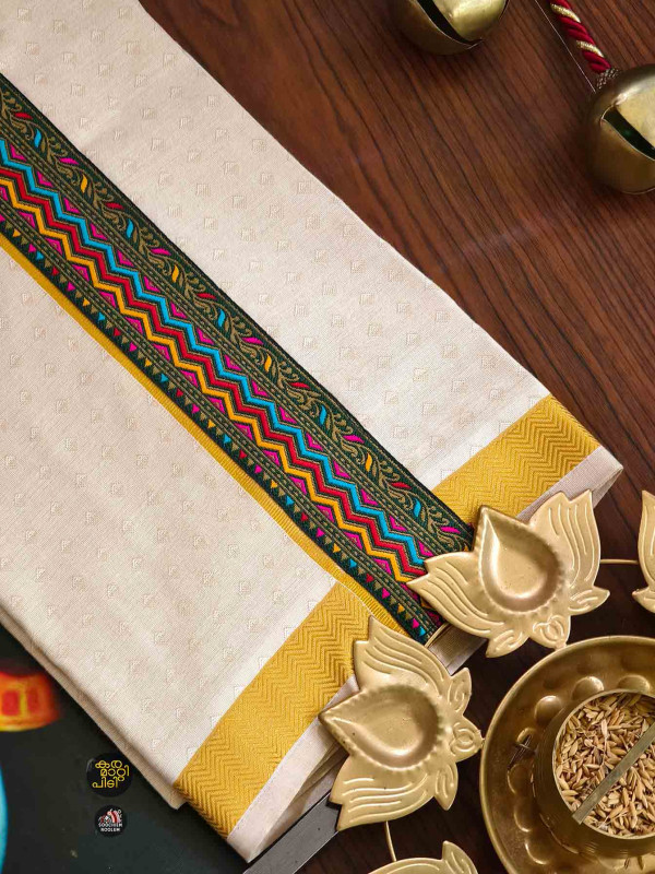Product Specifications: Multi Colour Embroidery Golden Kasavu Single Dhoti