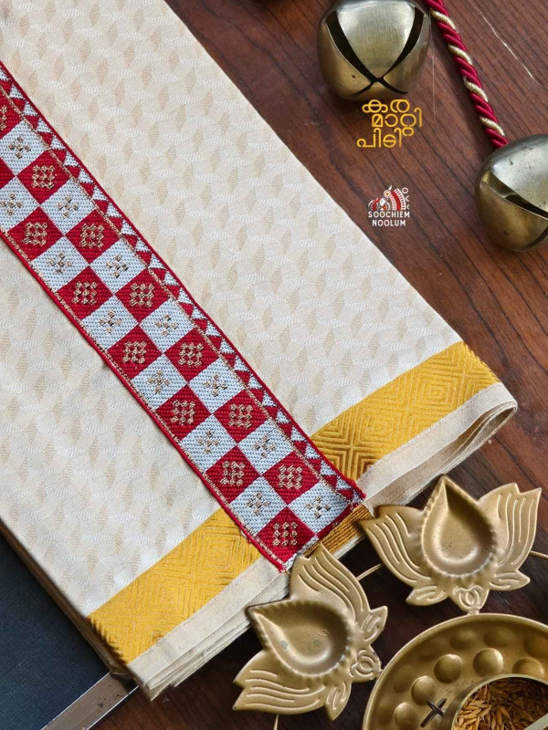 Product Specifications: Multi Colour Embroidery Golden Kasavu Single Dhoti
