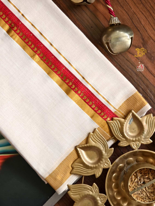 Product Specifications: Multi Colour Embroidery Golden Kasavu Single Dhoti