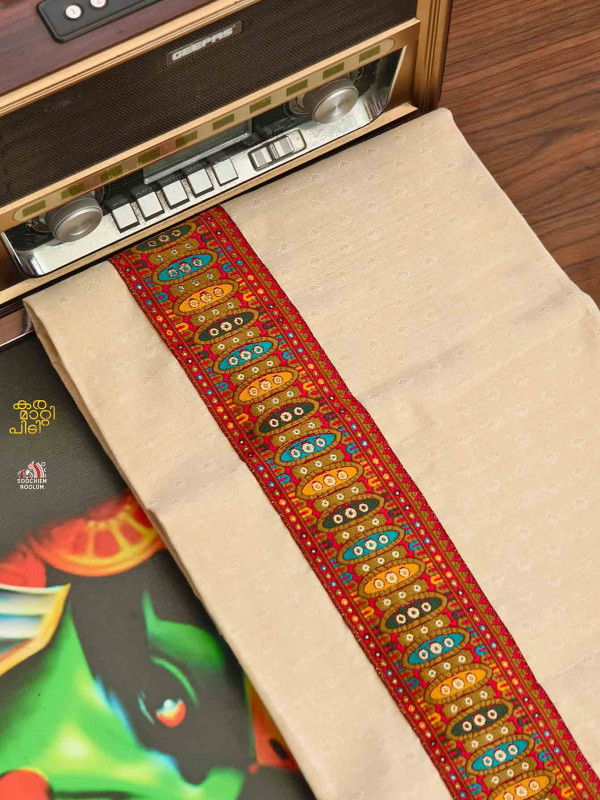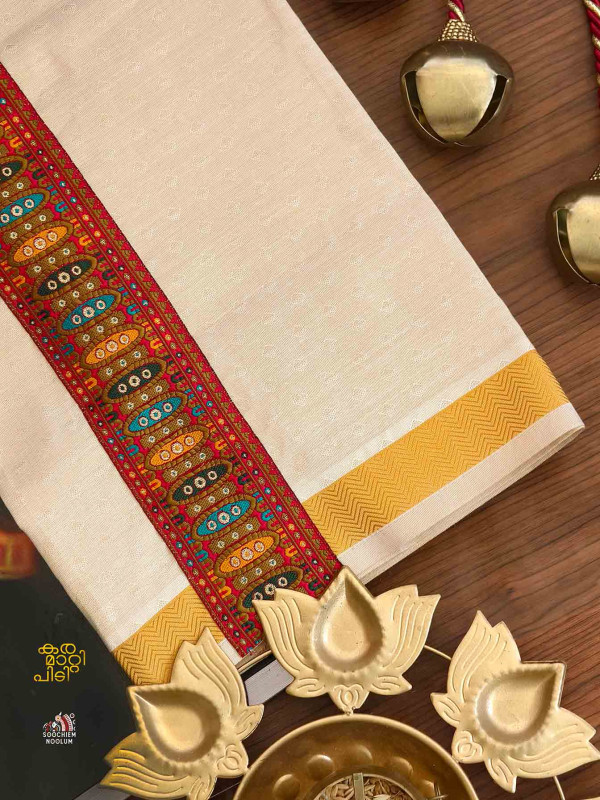 Product Specifications: Multi Colour Embroidery Golden Kasavu Single Dhoti