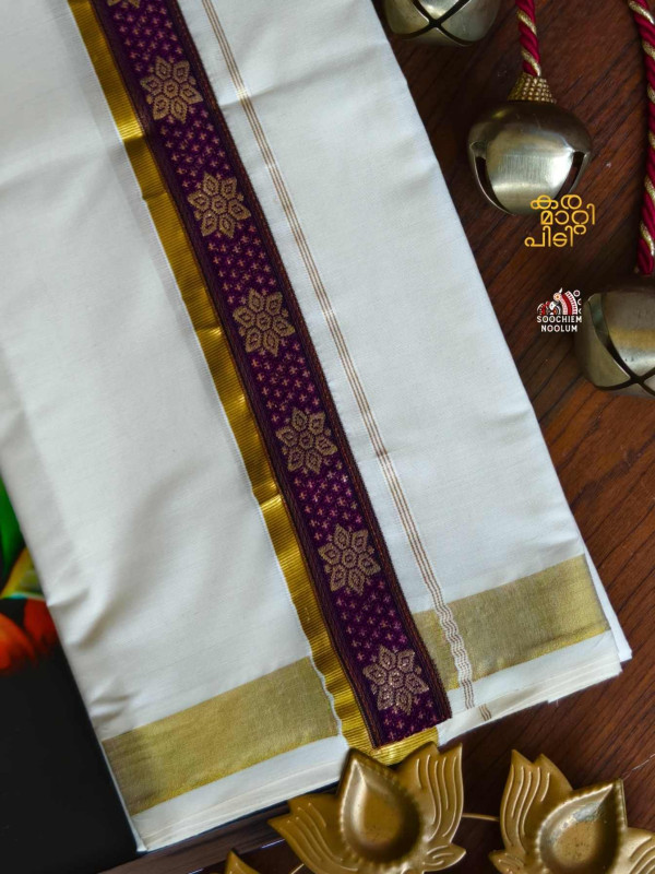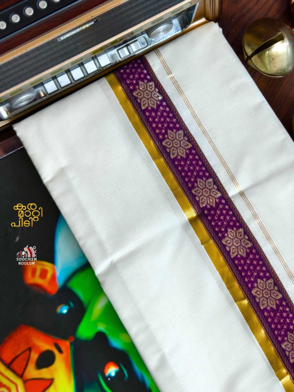 Stiched Border: Both end of the double kasavu dhotie is elegantly finished with a stitched border , adding a touch of sophistication and durability.