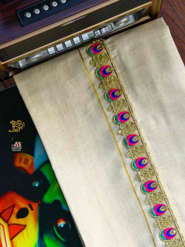 Stiched Border: Both end of the double kasavu dhotie is elegantly finished with a stitched border , adding a touch of sophistication and durability.