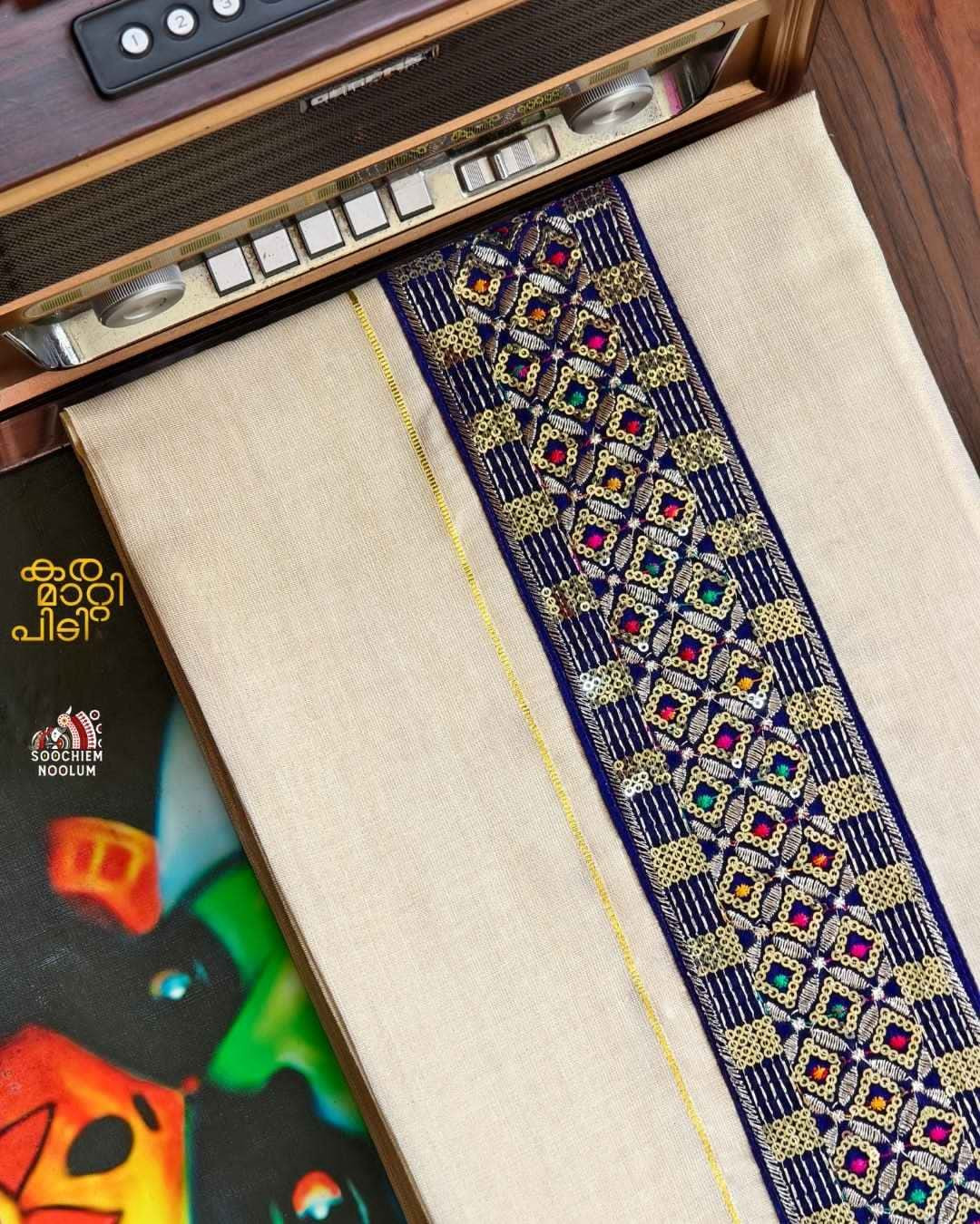 Stiched Border: Both end of the double kasavu dhoti is elegantly finished with a stitched border , adding a touch of sophistication and durability.