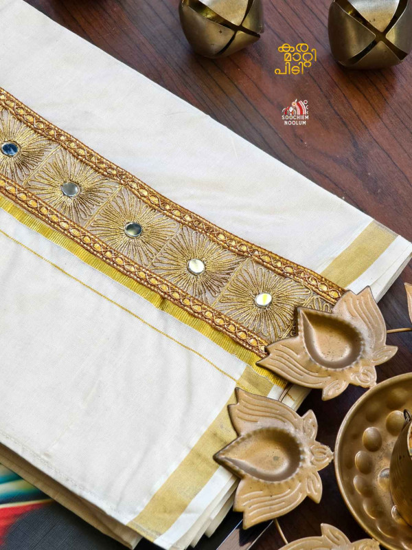 Stiched Border: Both end of the double kasavu dhoti is elegantly finished with a stitched border , adding a touch of sophistication and durability.