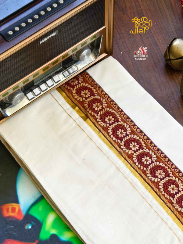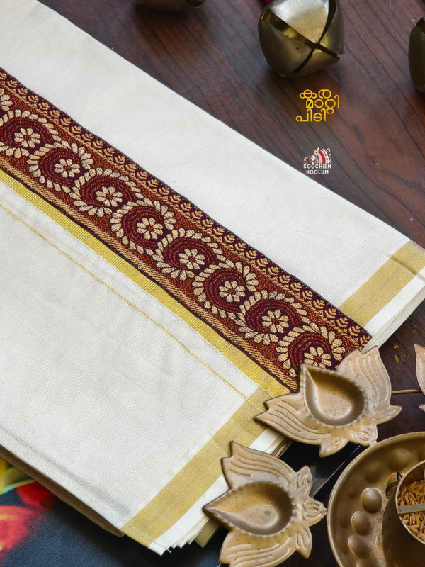 Stiched Border: Both end of the double kasavu dhoti is elegantly finished with a stitched border , adding a touch of sophistication and durability.