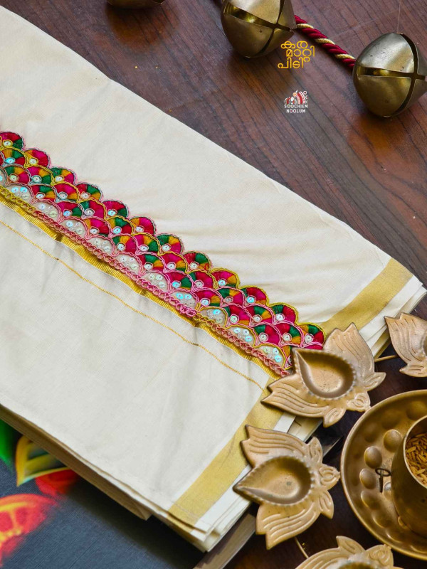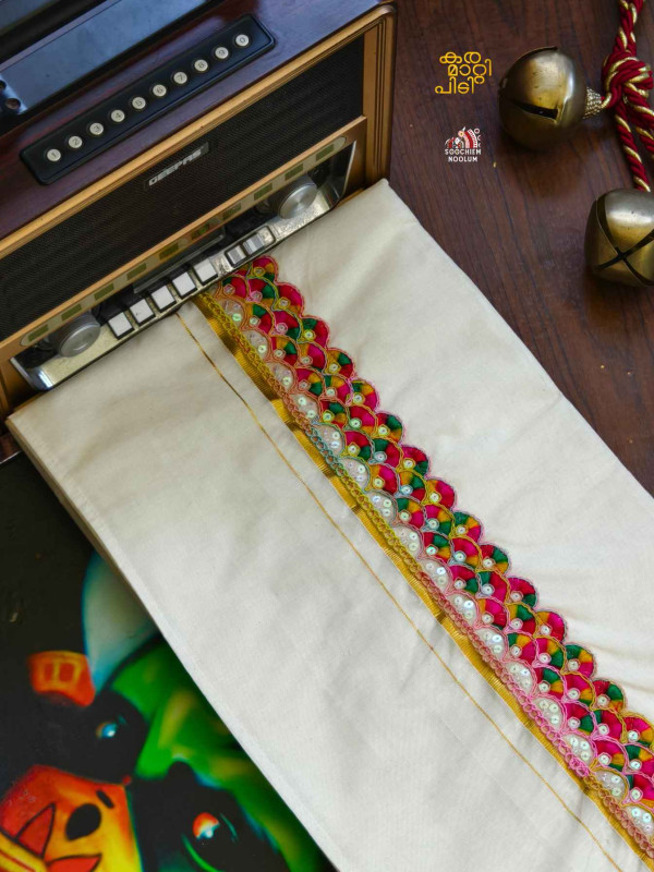 Stiched Border: Both end of the double kasavu dhoti is elegantly finished with a stitched border , adding a touch of sophistication and durability.