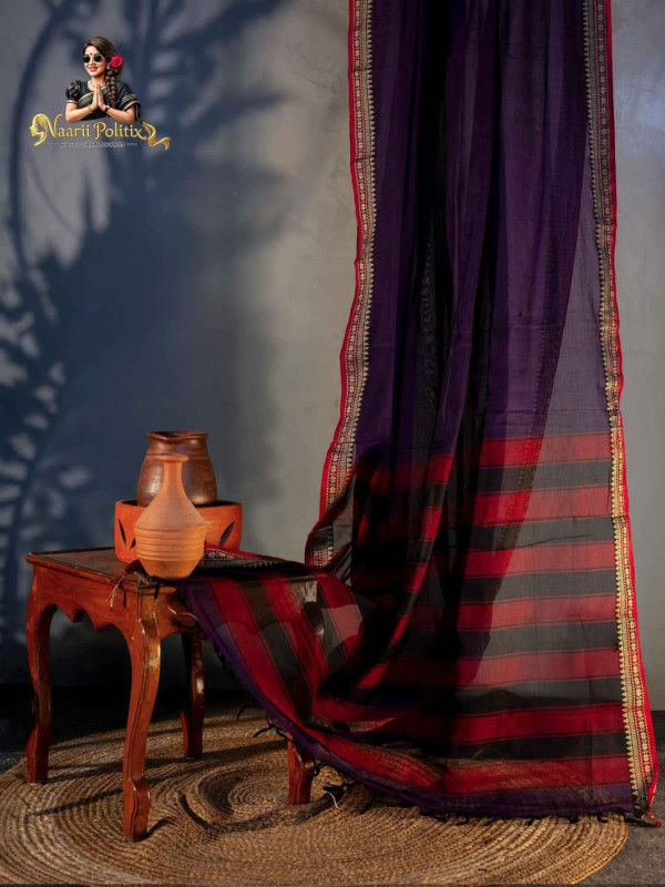 A beautiful blend of heritage weaving and everyday comfort, this Narayanpet Pure Cotton Saree stands out with its solid body . The saree is elevated with a richly woven traditional Narayanpet border featuring striking layers of multiple colors, geometric and floral-inspired motifs, giving it a vibrant yet classic appeal. Lightweight, breathable, and graceful, it is a lovely choice for festive gatherings, temple visits, and elegant daily wear.