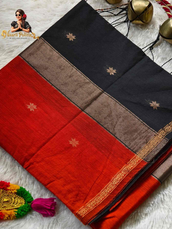 Body Color : Orange Pallu : Black