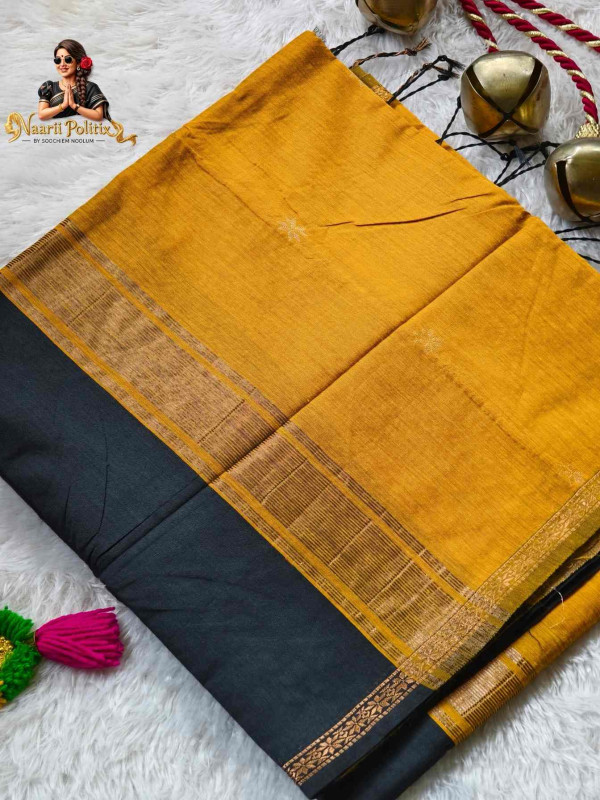 Body Color : Black Pallu : Mustard Yellow