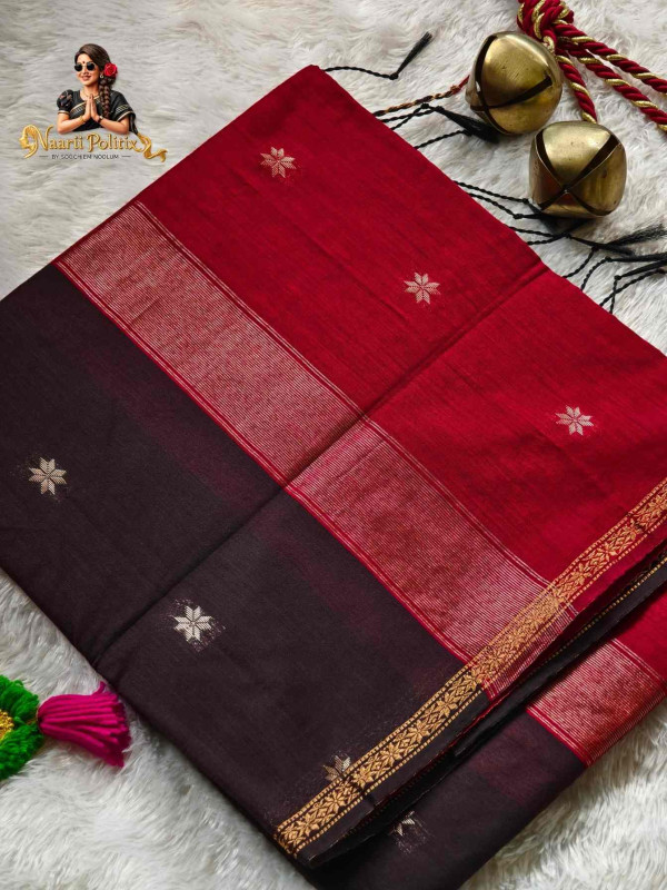 Body Color : Dark Brown Pallu : Maroon
