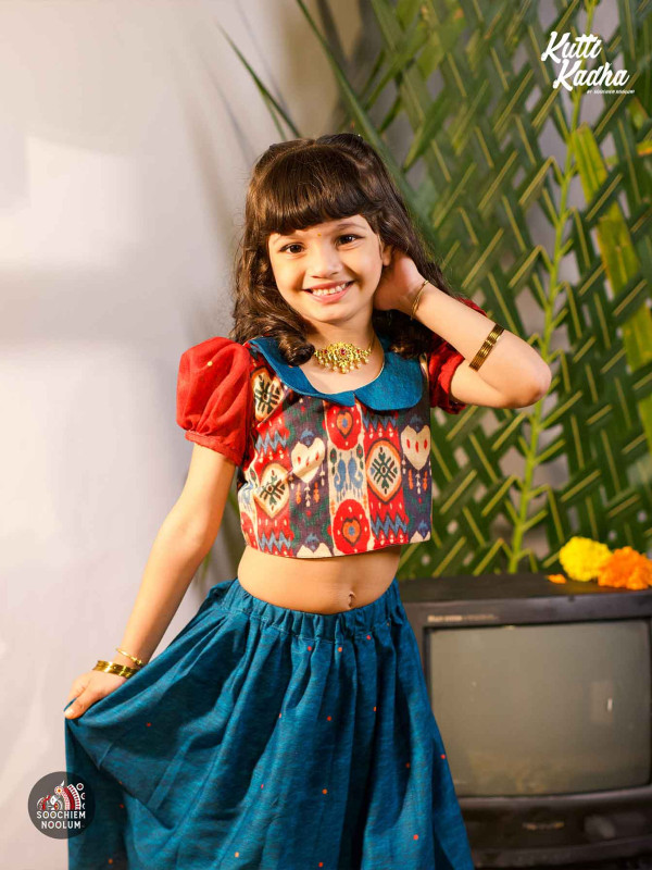 Introducing Nirakkoott, a delightful Gathered Skirt and Top collection from Kutti Kadha by Soochiem Noolum. Crafted from soft cotton fabric, this charming ensemble features intricate contemporary ikat patterns, enhancing its elegance and texture.