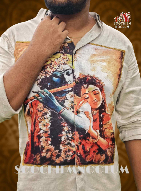 Rectangular patchIntroducing our exclusive collection of patchwork cotton linen shirts, a perfect blend of comfort and artistry. Each patch features intricate, hand-drawn illustrations of deities, festivals, and traditional figures, celebrating the beauty of contemporary and cultural art forms. These shirts are not just attire but a canvas that tells stories of tradition and heritage, offering a unique statement piece for every occasion. Embrace the richness of artistic expressions while enjoying the breathable luxury of cotton linen, designed to keep you stylish and comfortable all day long.