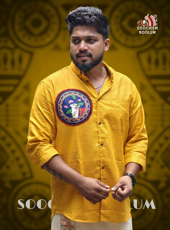 Rectangular patchIntroducing our exclusive collection of patchwork cotton linen shirts, a perfect blend of comfort and artistry. Each patch features intricate, hand-drawn illustrations of deities, festivals, and traditional figures, celebrating the beauty of contemporary and cultural art forms. These shirts are not just attire but a canvas that tells stories of tradition and heritage, offering a unique statement piece for every occasion. Embrace the richness of artistic expressions while enjoying the breathable luxury of cotton linen, designed to keep you stylish and comfortable all day long.