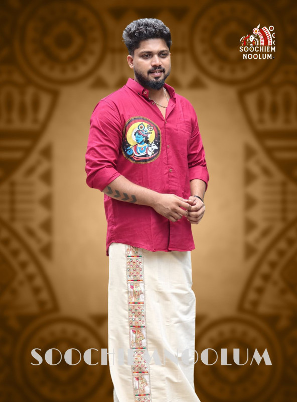Rectangular patchIntroducing our exclusive collection of patchwork cotton linen shirts, a perfect blend of comfort and artistry. Each patch features intricate, hand-drawn illustrations of deities, festivals, and traditional figures, celebrating the beauty of contemporary and cultural art forms. These shirts are not just attire but a canvas that tells stories of tradition and heritage, offering a unique statement piece for every occasion. Embrace the richness of artistic expressions while enjoying the breathable luxury of cotton linen, designed to keep you stylish and comfortable all day long.