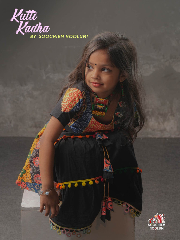 Elevate your little one's festive wardrobe with the exquisite Ajrakh Patchwork Skirt and Top Combo by Kutti Kadha from Soochiem Noolum. Beautifully crafted with attention to detail, this charming ensemble perfectly blends traditional artistry with contemporary style.
