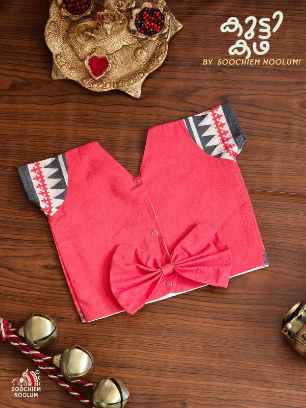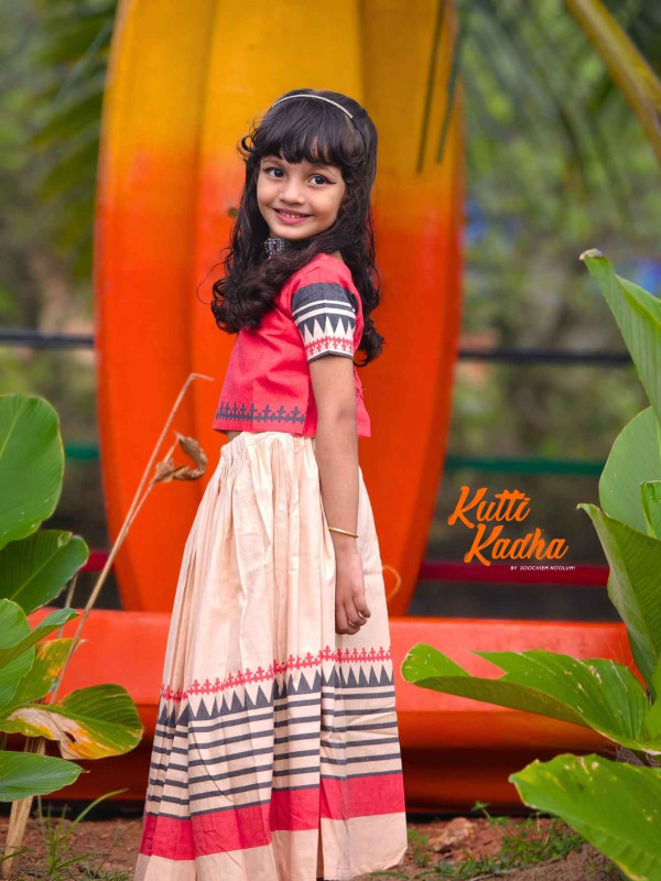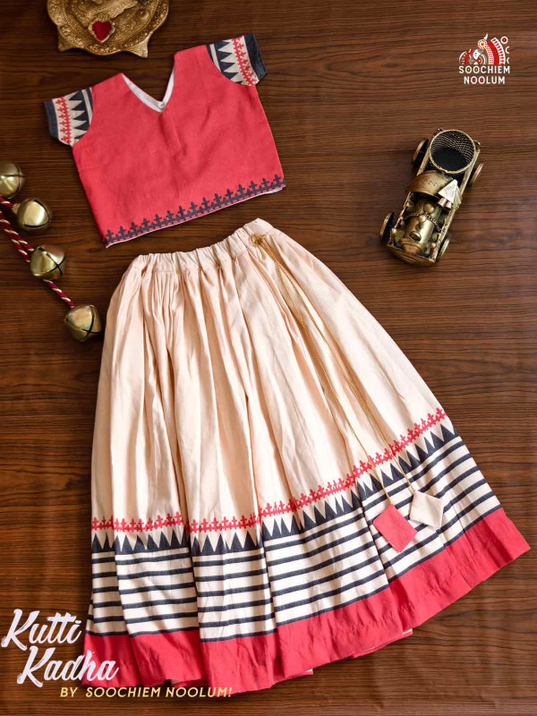 Crafted from soft, breathable cotton, the blouse and skirt offer exceptional comfort, ensuring your child stays cheerful and comfortable throughout the festivities. The blouse features artistic geometric patterns that cleverly blend symmetry and playful vibrancy, bringing out the joyfulness and energy of childhood.