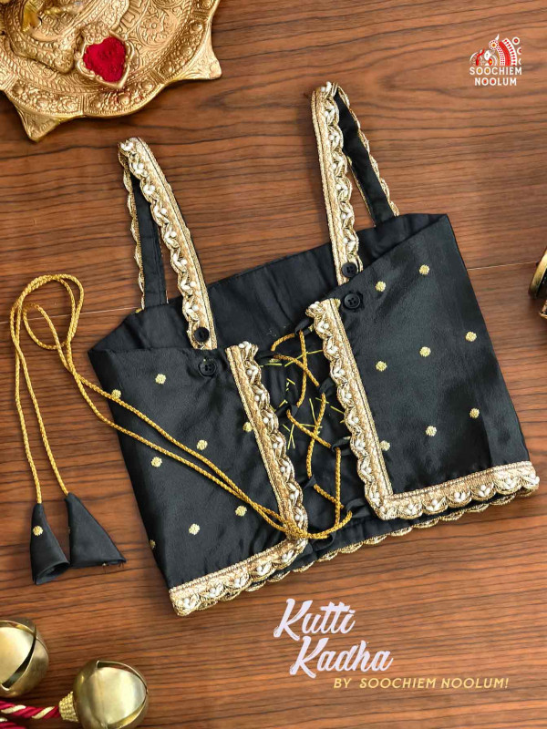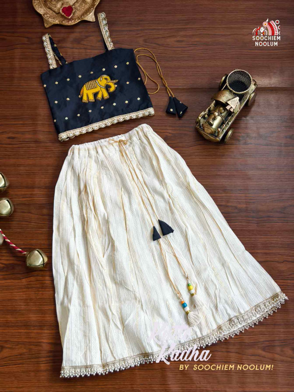 Make festive occasions memorable with this luxurious Silk Blouse and Lurex Skirt Combo by Kutti Kadha from Soochiem Noolum. Crafted to perfection, this ensemble beautifully blends rich textures with intricate craftsmanship, designed especially for your little fashionista.