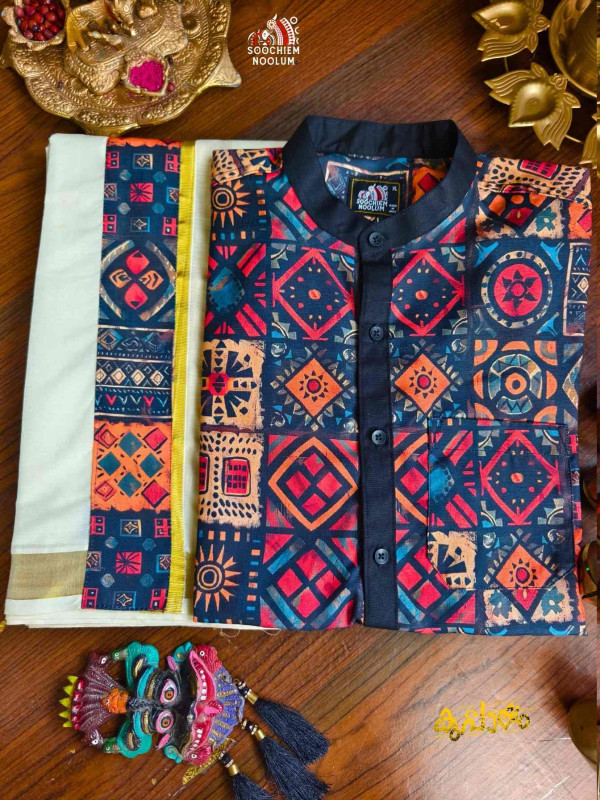 Product Specifications: Designer Shirt +Double Dhoti combo by Soochiem Noolum