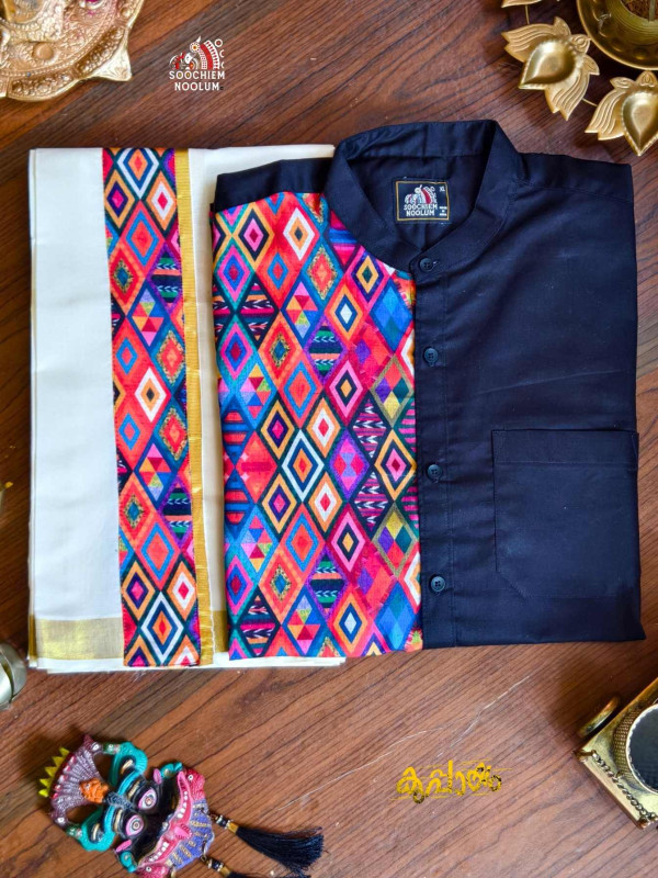 Product Specifications: Designer Shirt +Double Dhoti combo by Soochiem Noolum
