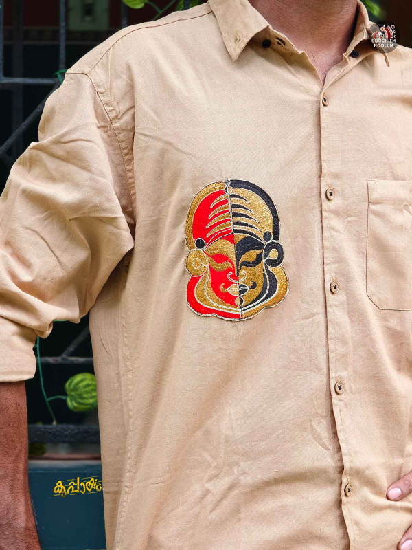 Embroidery Patch Designer Shirt-Single Copper kasavu Dhotie Combo