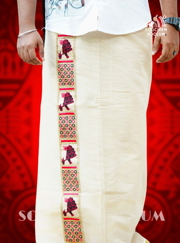 Stitched Border: One end of the lungi is elegantly finished with a stitched embroidery lace border, adding a touch of sophistication and durability.