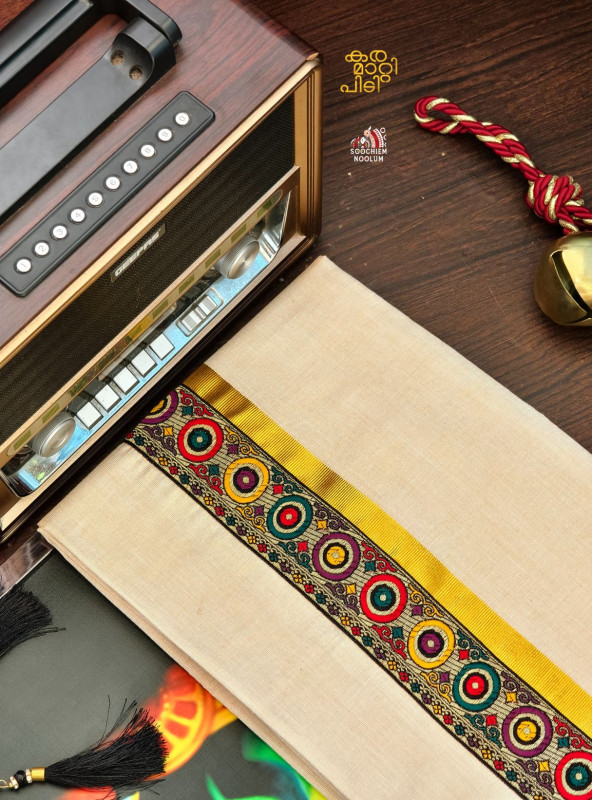 Product Specifications: Multi Colour Embroidery Golden Kasavu Single Dhoti