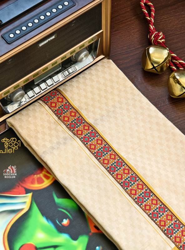 Product Specifications: Multi Colour Embroidery Golden Kasavu Single Dhoti
