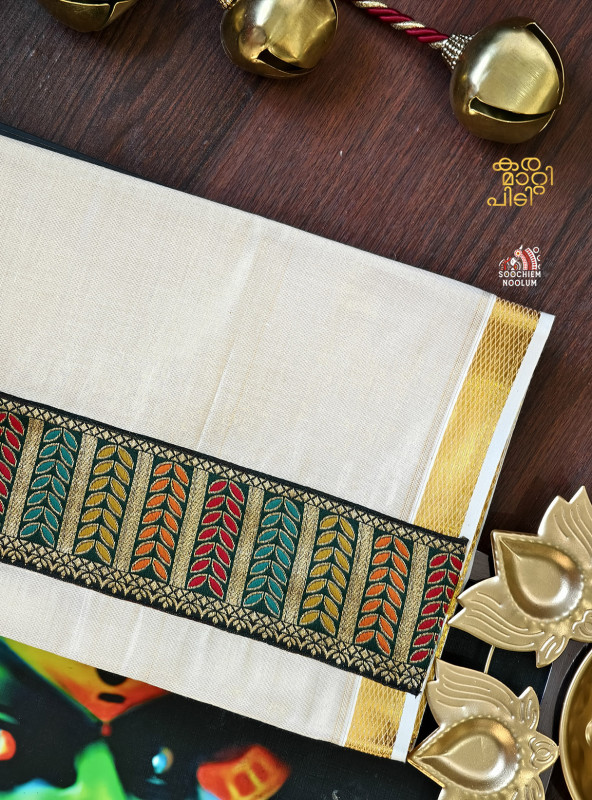 Product Specifications: Multi Colour Embroidery Golden Kasavu Single Dhoti