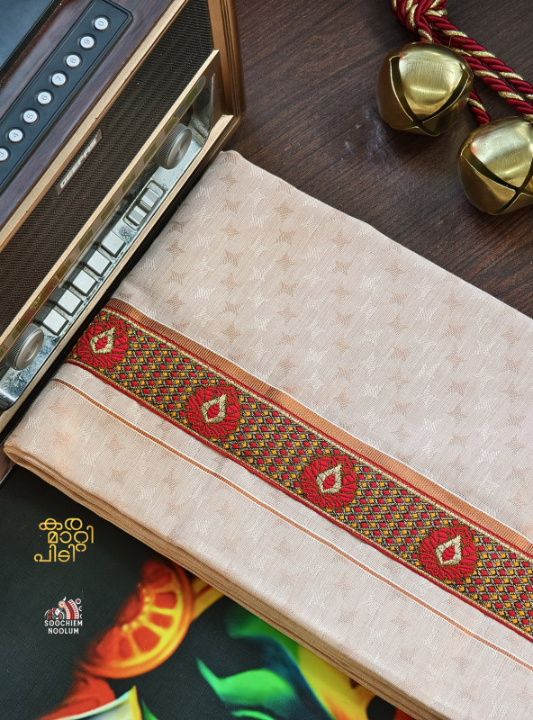 Product Specifications: Multi Colour Embroidery Copper Kasavu Single Dhoti