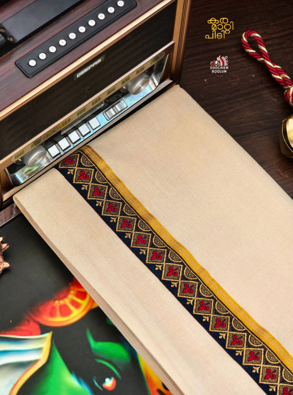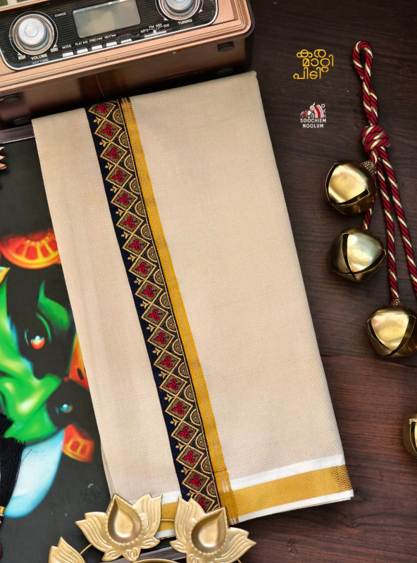 Product Specifications: Multi Colour Embroidery Golden Kasavu Single Dhoti