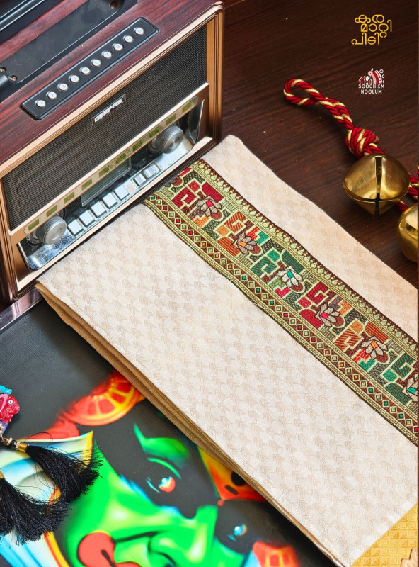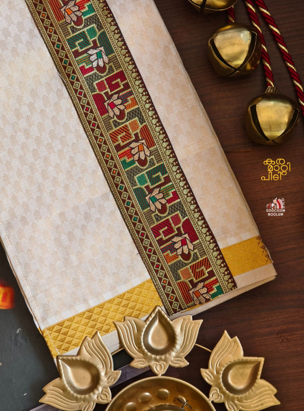 Product Specifications: Multi Colour Embroidery Golden Kasavu Single Dhoti