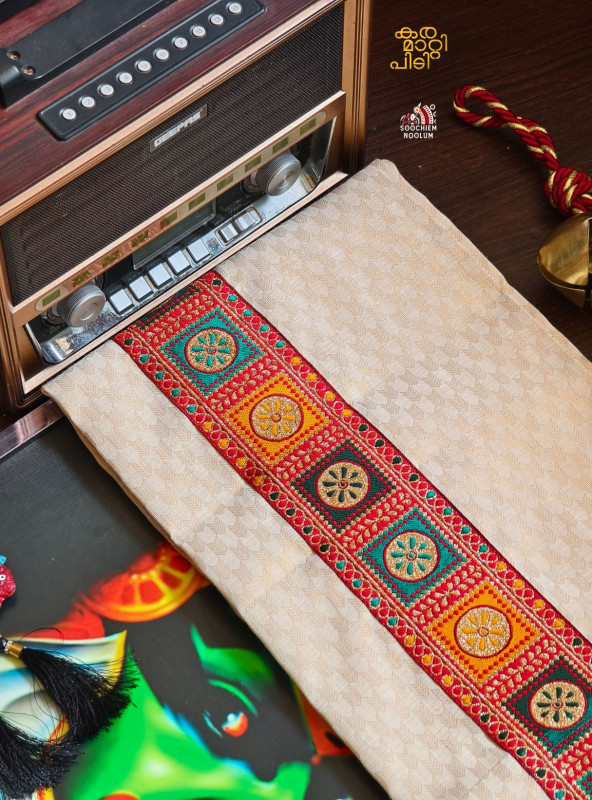 Product Specifications: Multi Colour Embroidery Golden Kasavu Single Dhoti