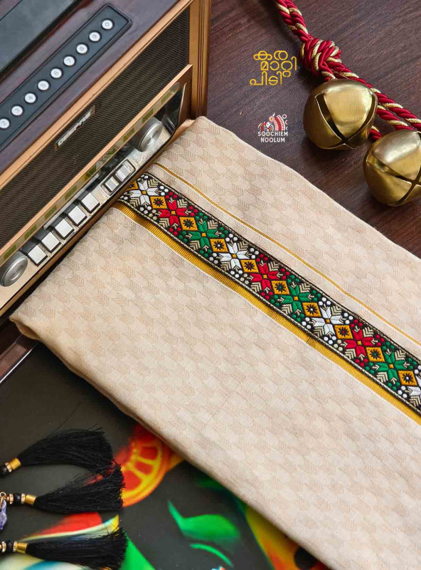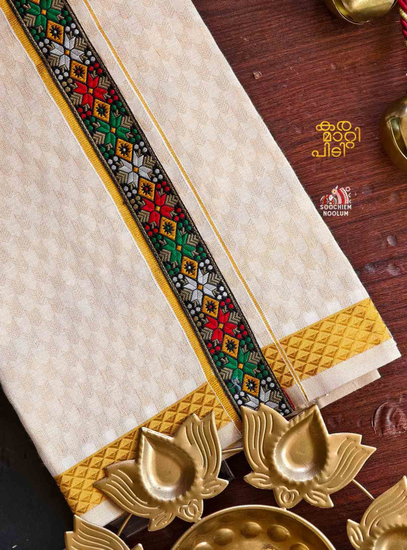 Product Specifications: Multi Colour Embroidery Golden Kasavu Single Dhoti