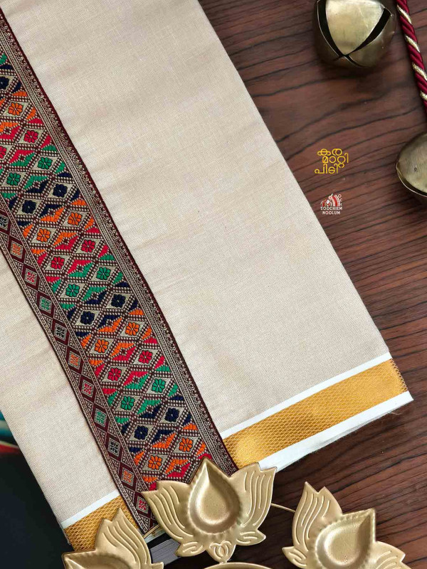 Product Specifications: Multi Colour Embroidery Golden Kasavu Single Dhoti