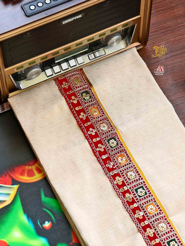 Product Specifications: Multi Colour Embroidery Golden Kasavu Single Dhoti
