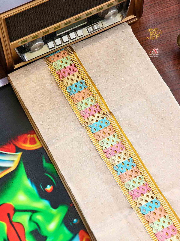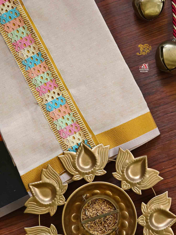 Product Specifications: Multi Colour Embroidery Golden Kasavu Single Dhoti